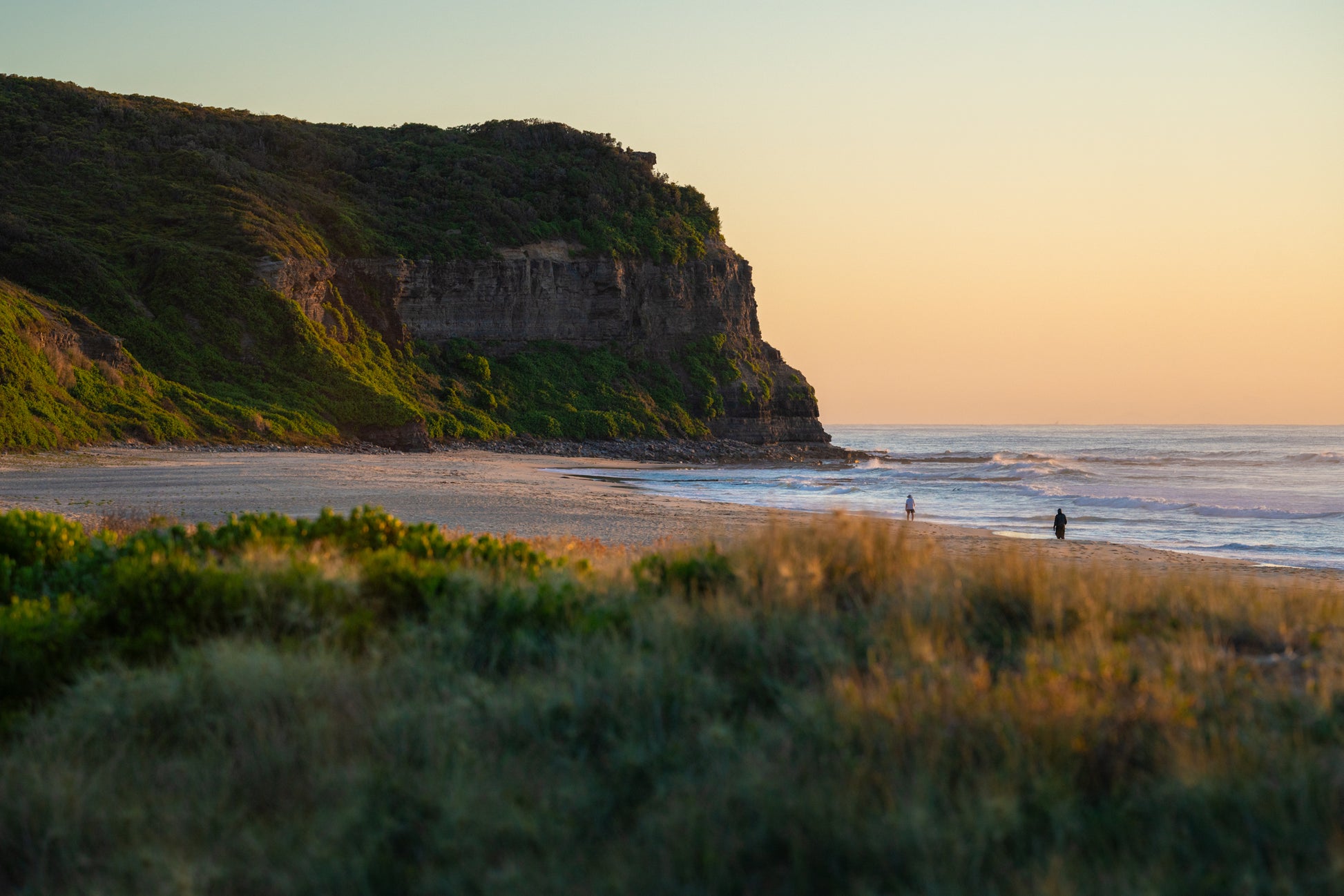 “Morning Strolls” captures the quiet beauty of Dudley Beach, Newcastle, in the soft light of early morning. Two people walk along the empty shoreline, spaced apart, each lost in their own thoughts as gentle waves wash up the sand. The pastel dawn sky and fresh footprints highlight the peaceful solitude of a morning beach walk. This coastal wall art brings a piece of Newcastle’s laid-back surf culture and natural beauty into any home.