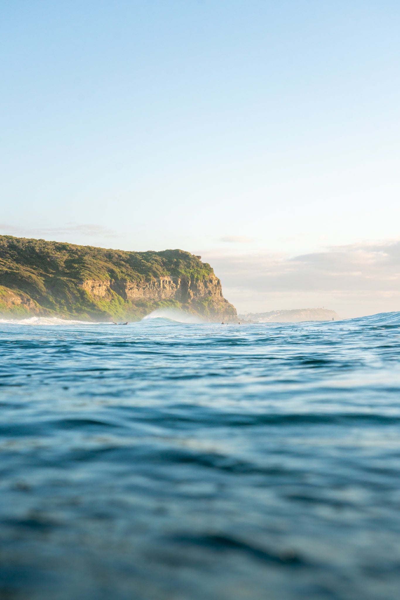 This image was taken at Dudley Beach, between sets when the ocean exhales. Sitting low in the water, I watched the surface smooth out, the headland soften in the early light, and everything slow down just enough to breathe. These lulls never last long, but they’re what make the chaos that follows feel earned.