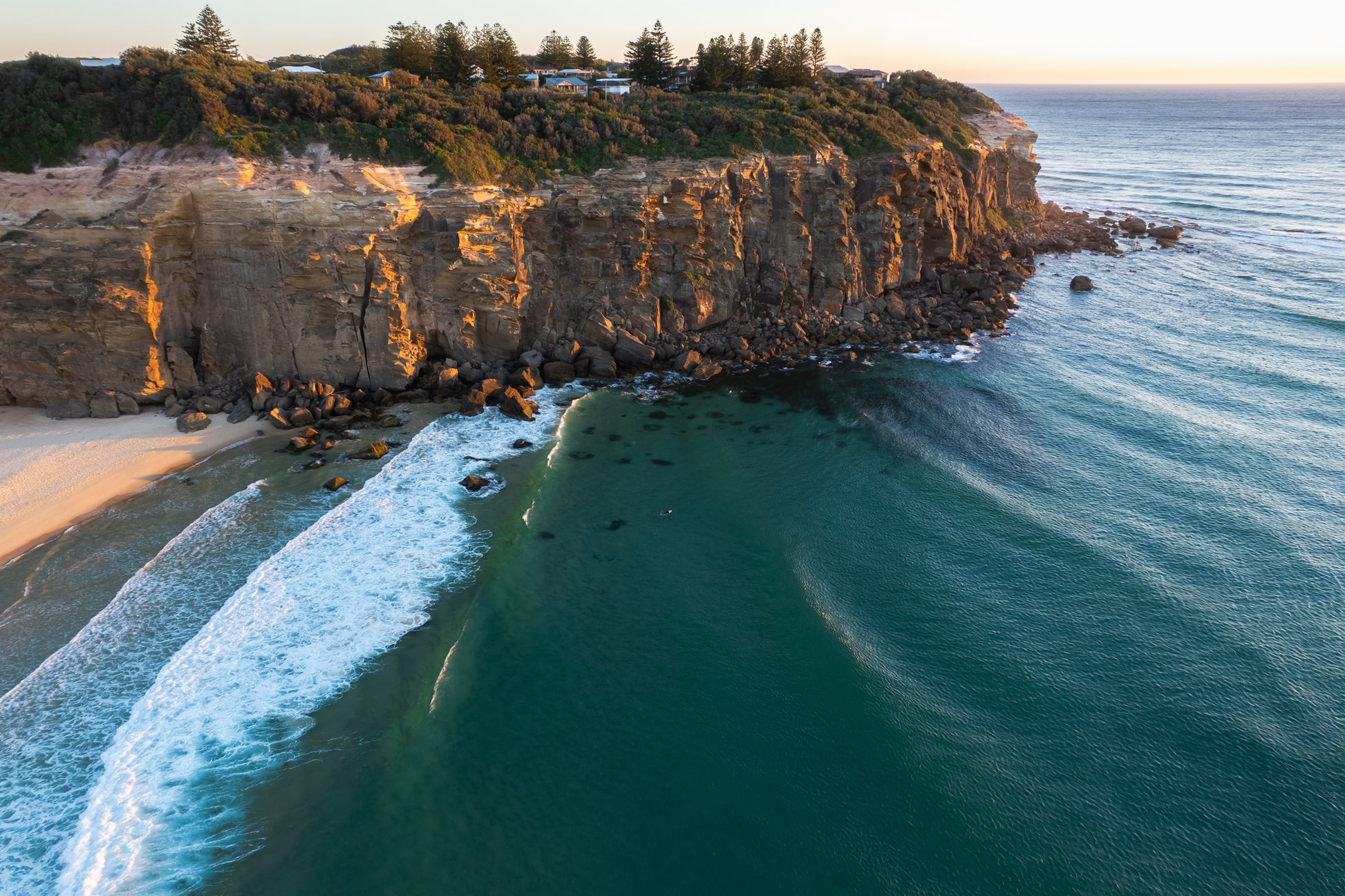 Ambercut was taken from above at Redhead, where the coastline hardens and the ocean has no choice but to bend around it. The headland slices cleanly through the swell, creating that sharp seam between deep water and the shallows — dark green holding space, lighter water folding and breaking along the edge. From the air, you see what you can’t from the beach: how precise the coastline is, how the wave lines draw themselves, and how Redhead quietly shapes every set that passes through. This is one of those moments where the scale only really makes sense once you step back.
