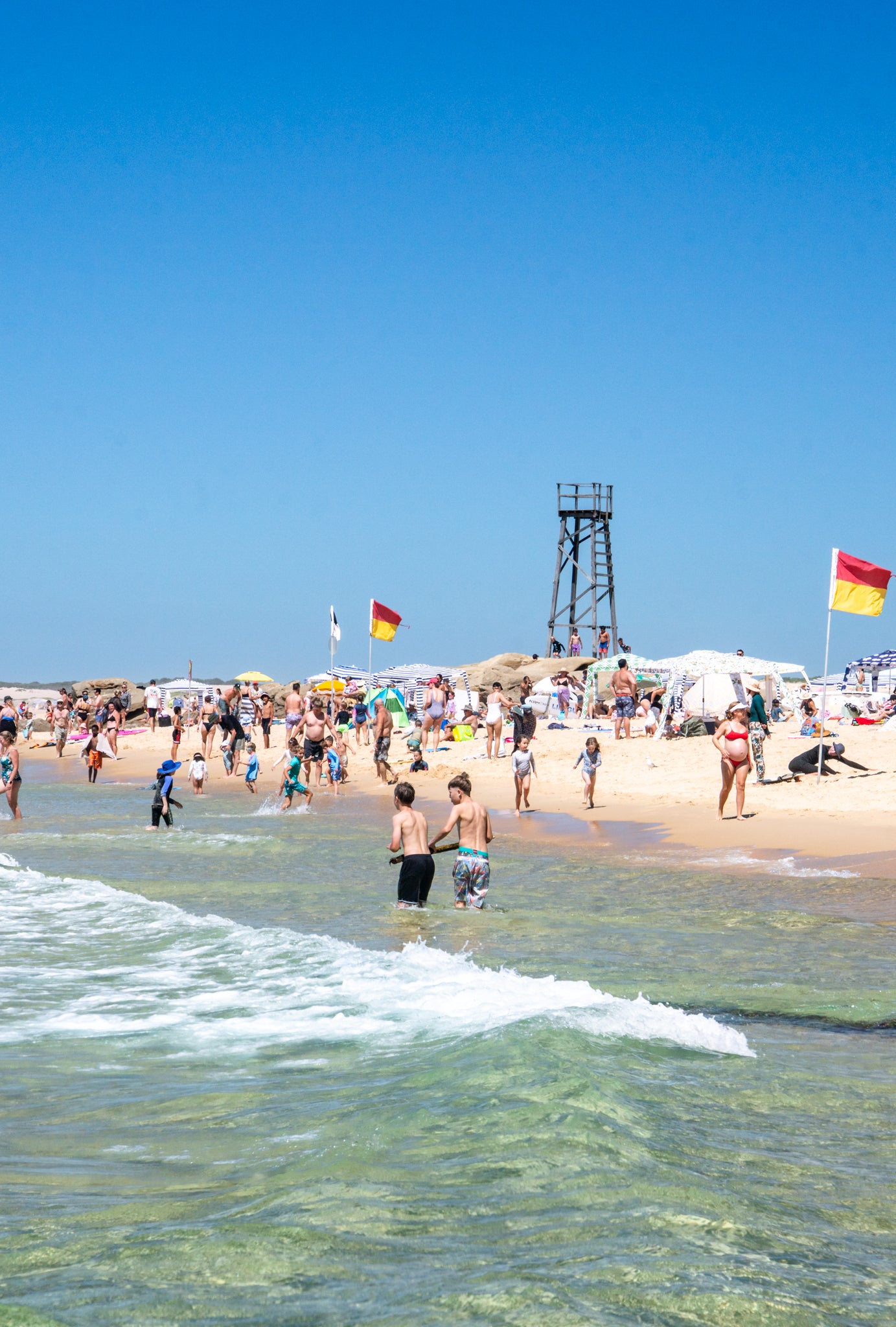 Taken in the shallows at Redhead Beach, where the water thins out and the crowd thickens. This is the edge of the ocean most people know, ankle-deep, flags up, kids running in and out, families hovering close. It’s busy, loud, and constantly moving. I like shooting these scenes because they show how the beach actually gets used, not just how it looks on a perfect day. No drama, no swell, just people and water meeting in the most familiar way.